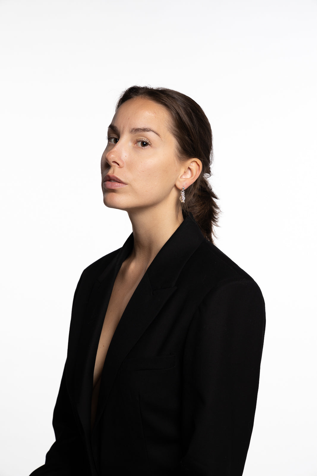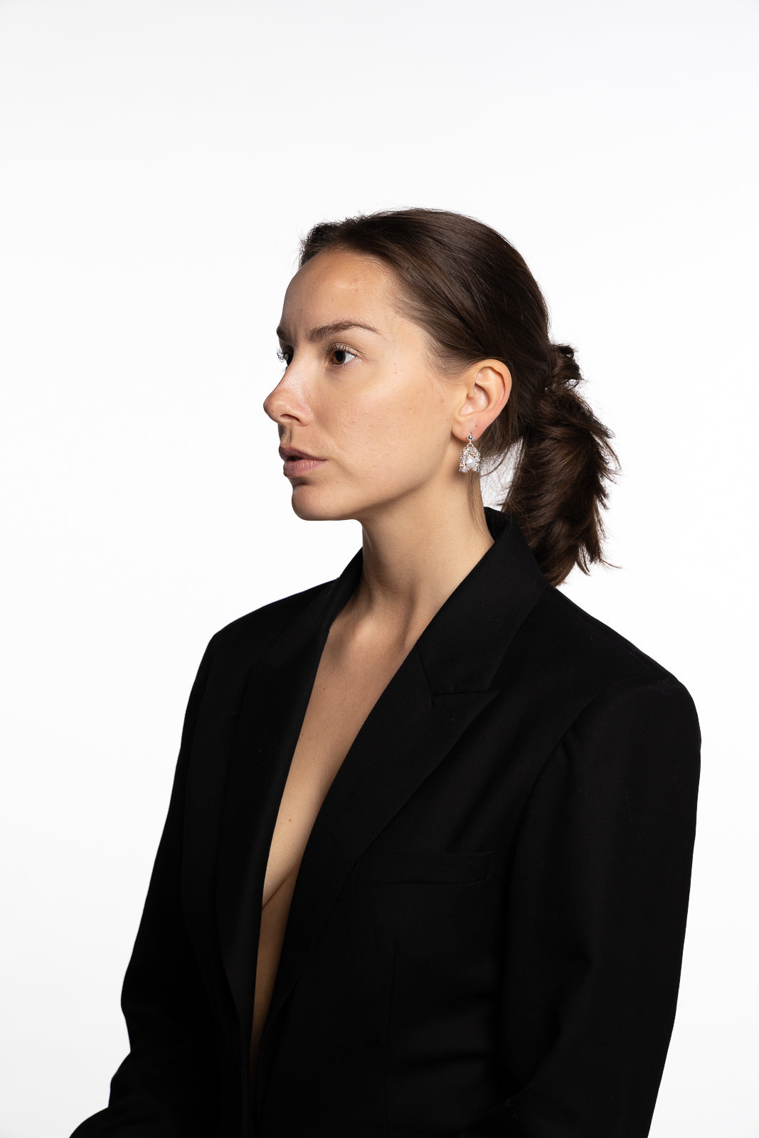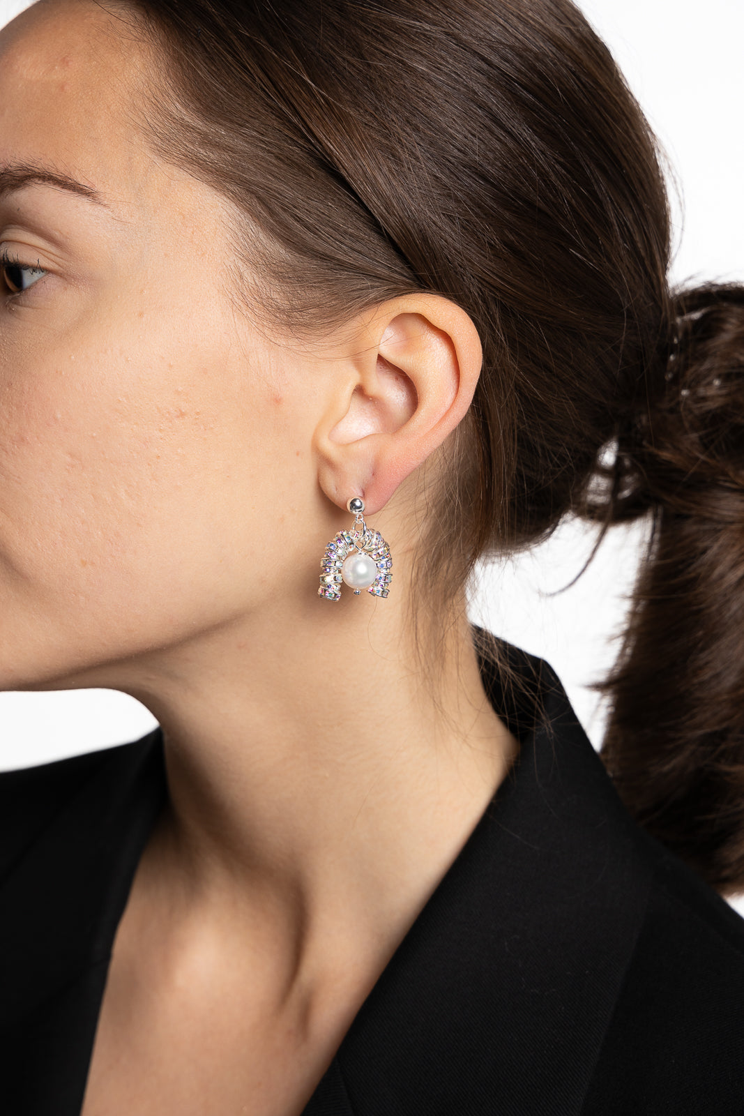 Petite Paris Baroque fra Pearl Octopuss.y er øredobber med ferskvannsperler hengende fra glitrende glasskrystallbuer, festet med ørestikker i 925 sterling sølv.