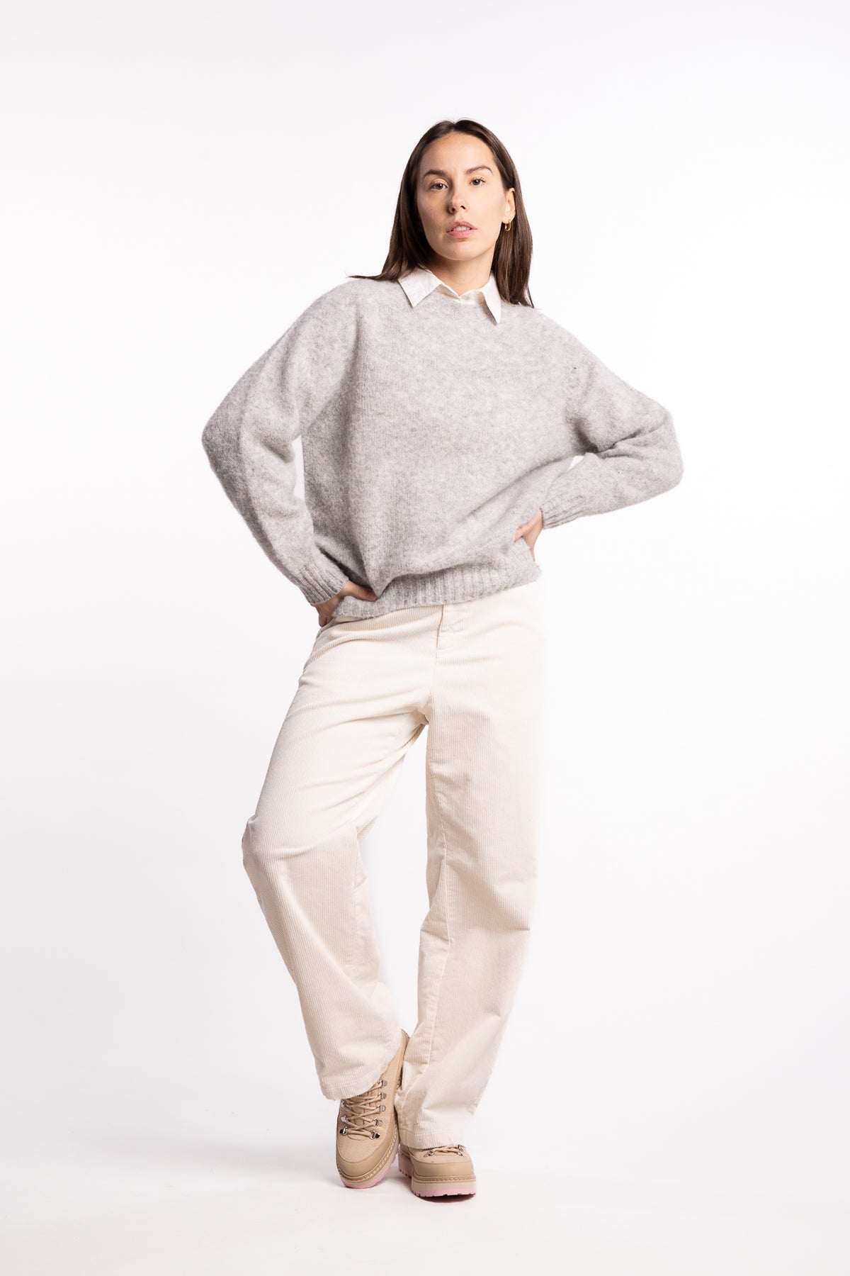 Den børstede overflaten er laget ved hjelp av tradisjonelle teknikker med naturlige tistler, og plagget er ferdigstilt for hånd med ribbestrikkede kanter som gir en raffinert passform. En tidløs, ekte Howlin’-favoritt – laget for å vare.