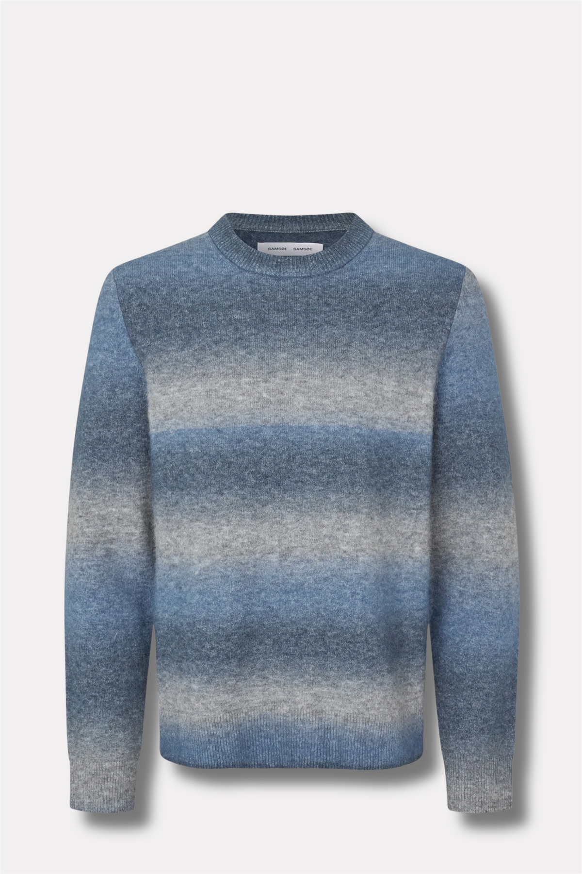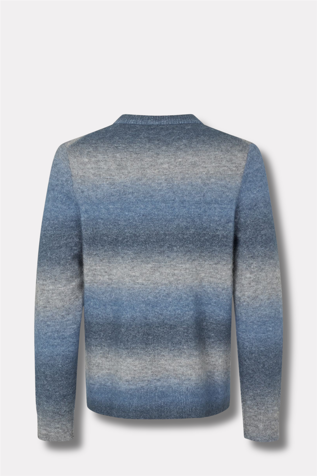 Genser med normal passform og tonale ombre-striper i melert uttrykk. Modellen har ribbestrikket rund hals, mansjetter og kant, samt fullfashion-detaljer ved skulder og sømmer. Strikket i en blanding av resirkulert polyester, ull og alpakka. RWS-sertifisert for ansvarlig dyrevelferd og landbruk.
