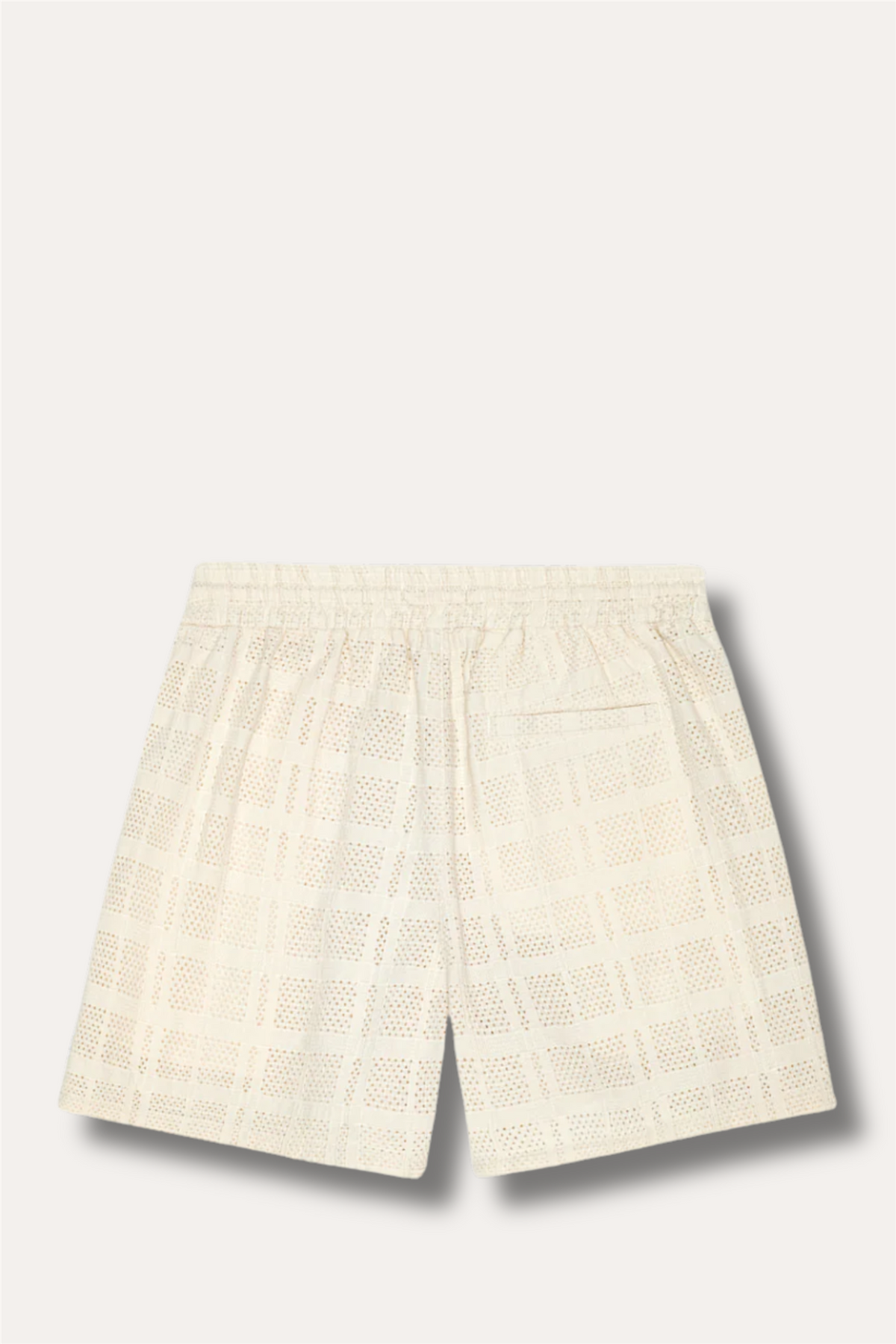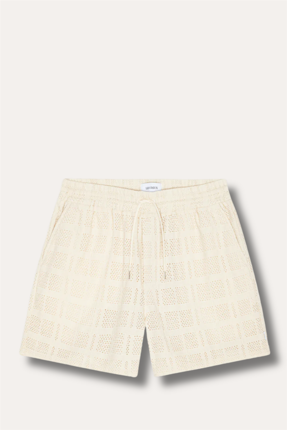 Charlie Shorts fra Les Deux i Ivory er et par casual shorts laget i lett og strukturert broderie anglaise-stoff. Med elastisk snøring i livet og diskrete sidelommer kombinerer de komfort med et sofistikert uttrykk – perfekte for avslappede sommerdager.