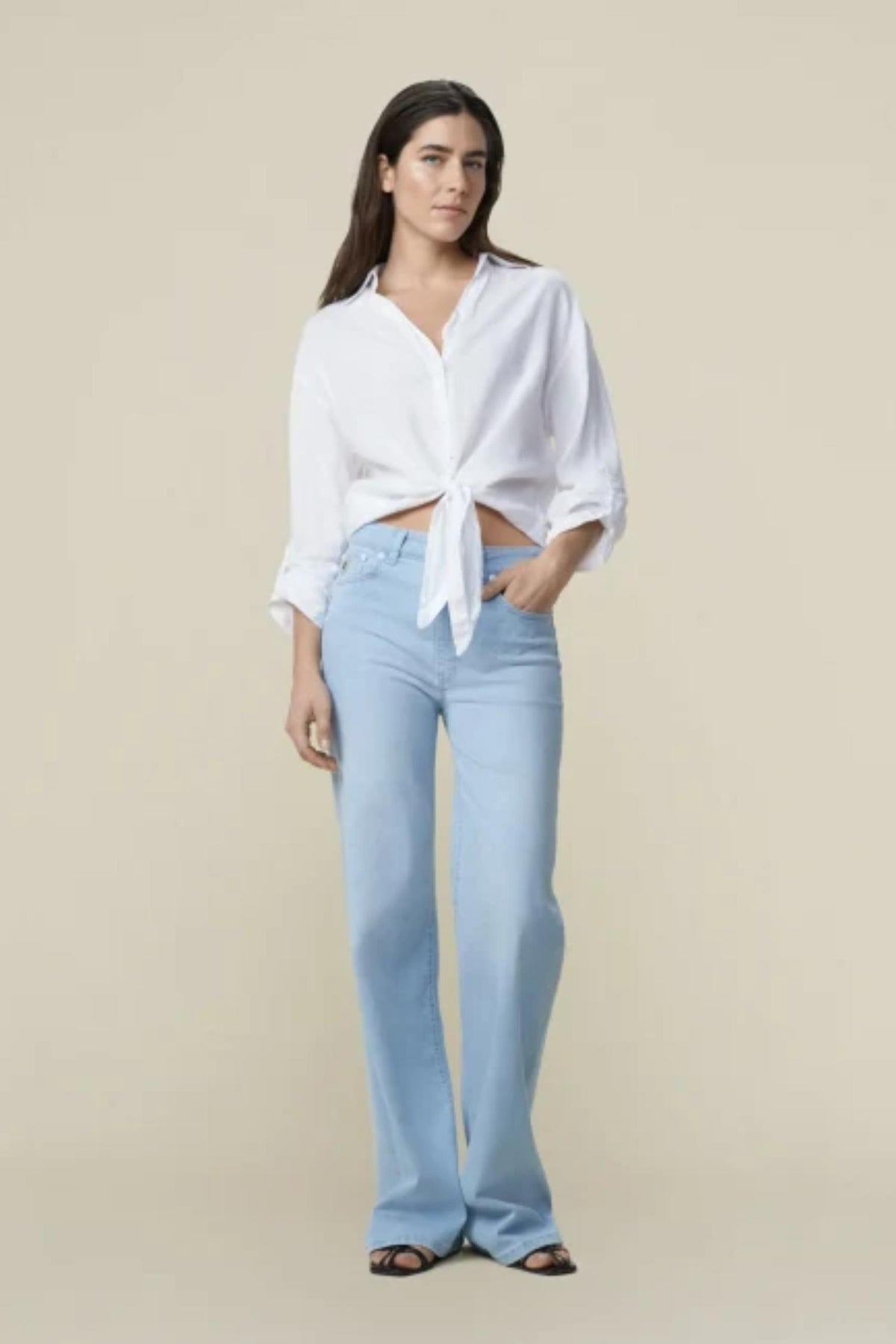 Den rene hvitfargen og den naturlige linstrukturen gir et sommerlig, tidløst uttrykk – like fin til dressede bukser som til favorittdenimen din. 100 % lin gjør den pustende og behagelig mot huden, spesielt i varmere sesonger.