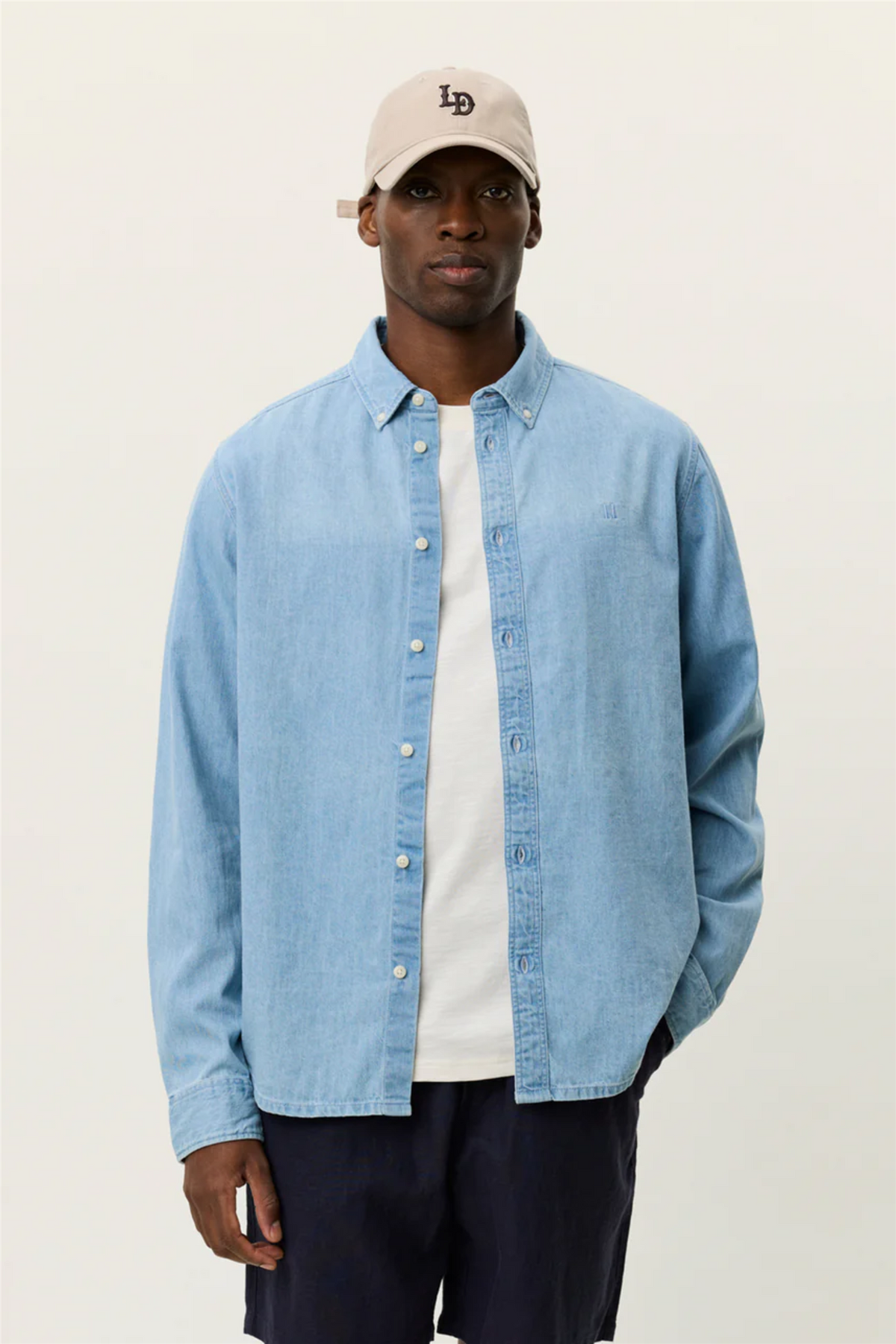 Konrad Denim Shirt Light Indigo Wash er en tidløs hverdagsfavoritt med et avslappet, men gjennomført uttrykk. Den myke, vaskede denimen gir skjorten en behagelig følelse og et naturlig innarbeidet preg, mens den lyse indigofargen gjør den enkel å kombinere med både lyse og mørke plagg. Button-down-kragen og de justerbare mansjettene bidrar til et rent og anvendelig design, perfekt for både jobb og fritid.