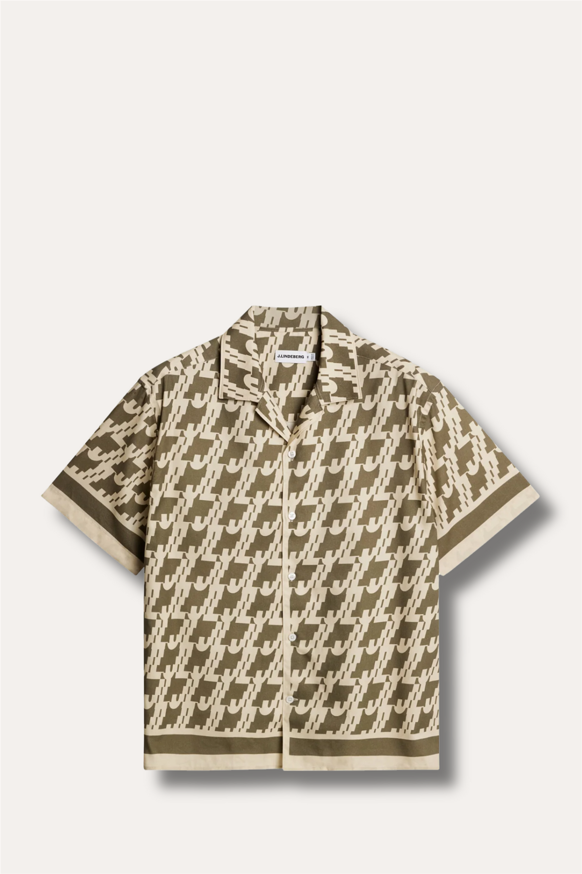 J.Lindeberg Ellis Border Resort Shirt i Glitch Kalamata er en retroinspirert skjorte med sesongbasert print og fine kontrastdetaljer. Den er laget i en myk og lett blanding av økologisk bomull og Tencel, med åpen resort-krage og korte ermer som gir en avslappet, men gjennomført stil. Perfekt til både chinos og shorts – et plagg som skiller seg ut og fungerer like godt på dagtid som på kvelden.