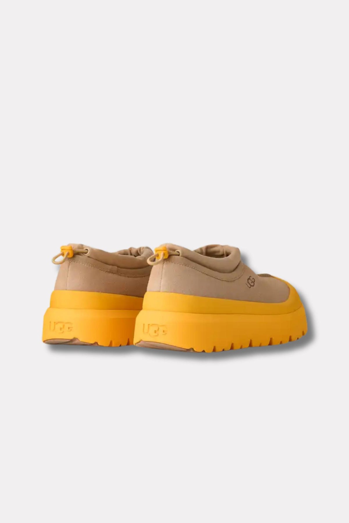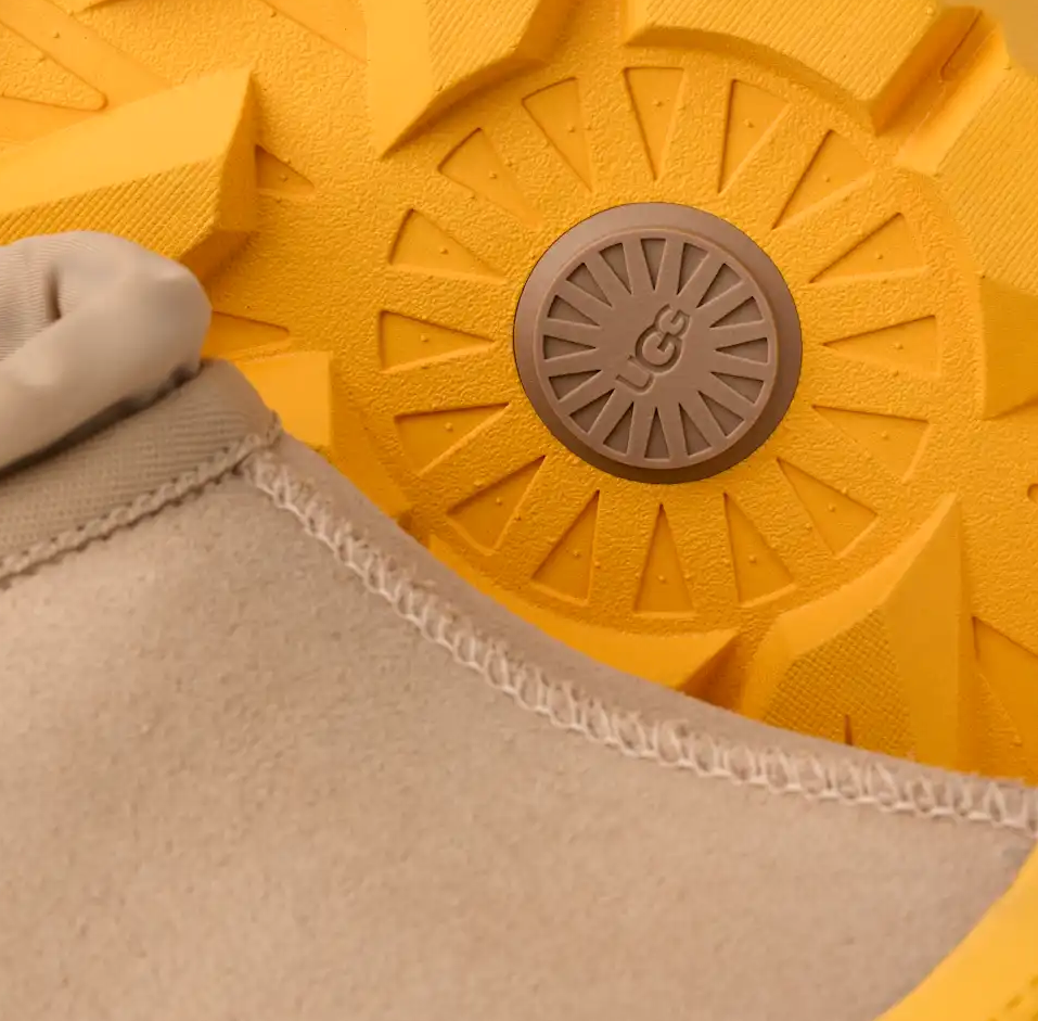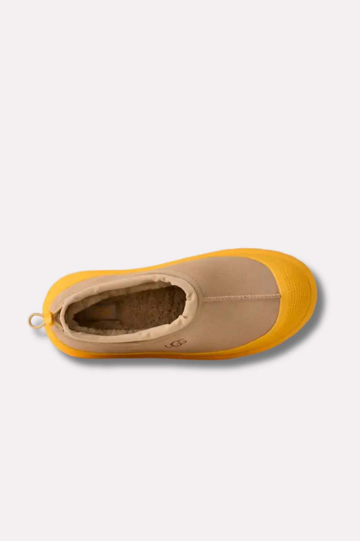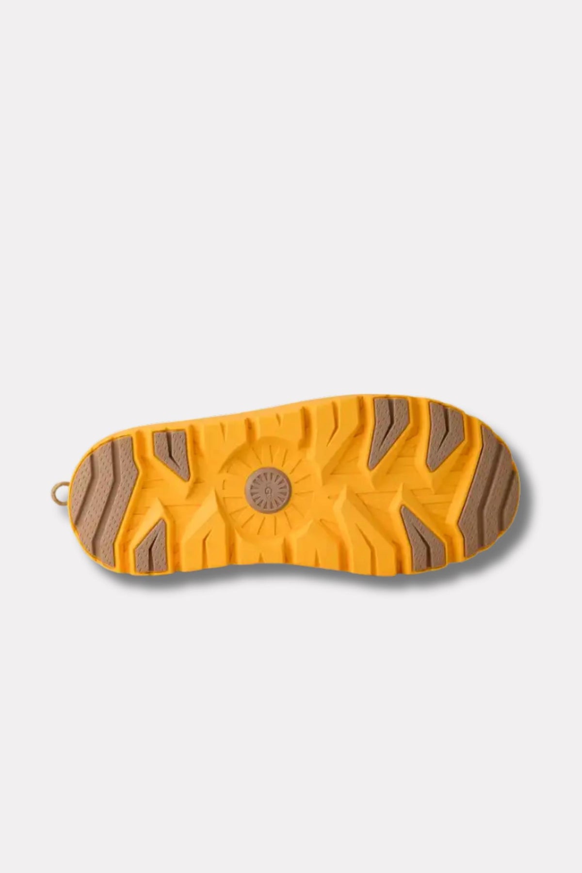 En værtilpasset versjon av den ikoniske Tasman-modellen fra UGG®, laget for utendørs bruk i fuktige forhold. Tasman Weather Hybrid kombinerer vanntett semsket skinn og sømforseglet konstruksjon med en lett slip-on silhuett. Fôret med UGGplush™ for komfort og varme, mens en permanent galosj og yttersåle i sukkerrørbasert EVA med Spider Rubber®-pods sørger for godt grep i våte forhold.