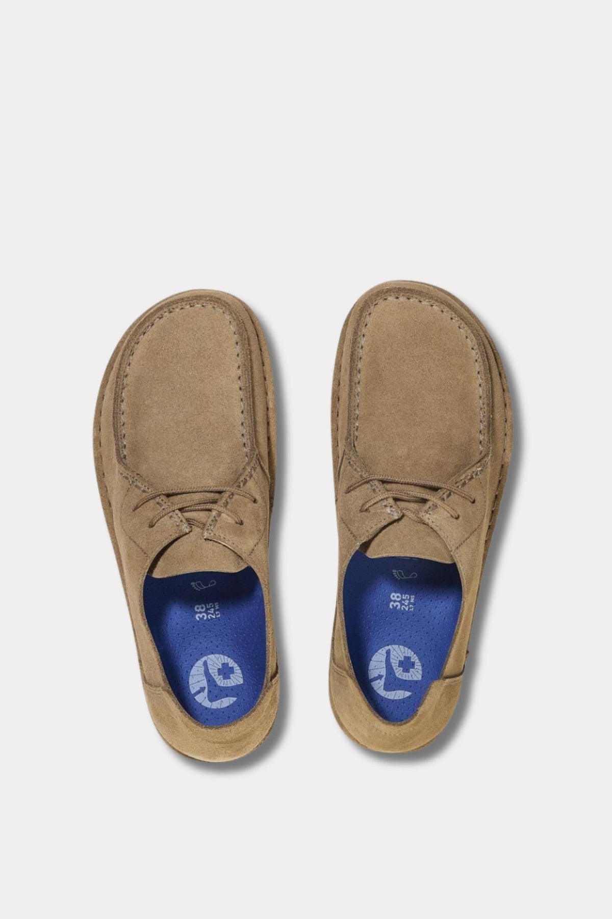 Utti Lace fra Birkenstock er en tidløs mokkasinsko med et moderne uttrykk. Modellen er laget i semsket skinn med en karakteristisk søm som gir et tydelig designelement. Den myke hælkappen gjør skoene enkle å ta av og på, samtidig som den gir ekstra komfort i bruk. Innersålen er Birkenstocks originale Deep Blue-fotseng – anatomisk formet, uttakbar og laget for optimal støtte og demping. En slitesterk yttersåle i naturgummi med korkelementer sikrer godt grep og lang holdbarhet.