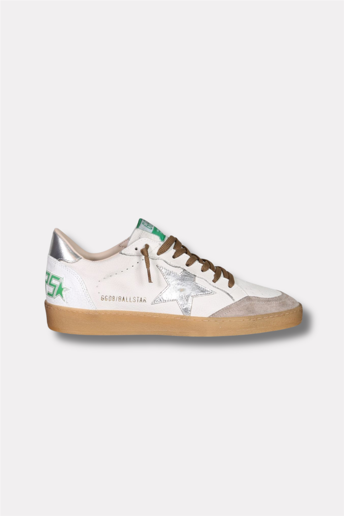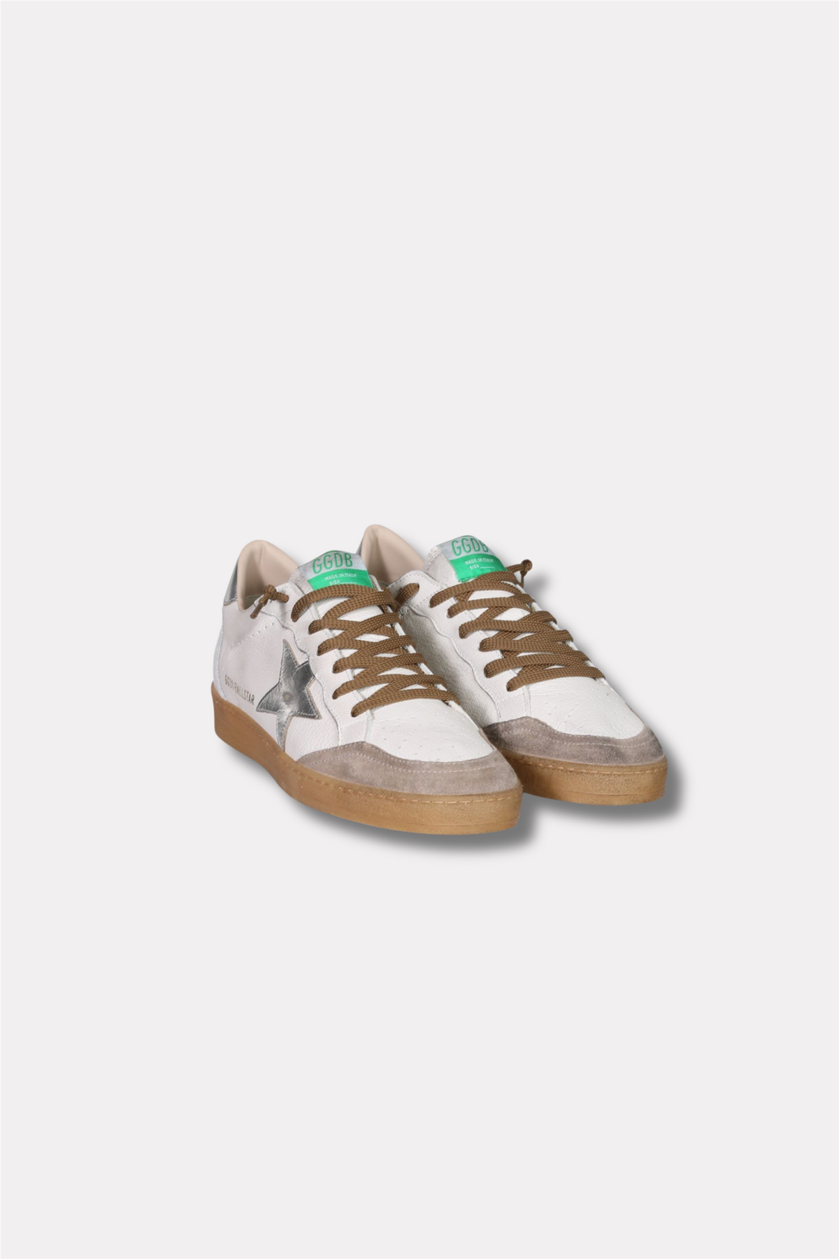 Ball Star Nappa White/Beige/Silver fra Golden Goose er inspirert av 80-tallets amerikanske college-estetikk, med tydelige referanser til både basketball og skating. Skoen kombinerer et tidløst design med merkets karakteristiske vintage-finish, som gir hvert par et unikt og brukt uttrykk. En allsidig sneaker som funker like godt til hverdags som til mer gjennomførte antrekk.
