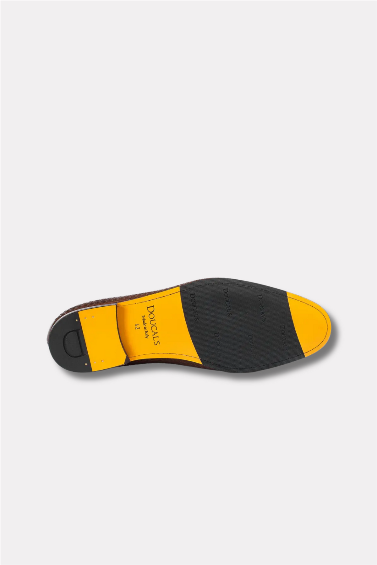 Doucal’s Penny Adler Woven Leather Loafer er en elegant loafer i lys brun skinn med en raffinert, tett vevd struktur som gir et eksklusivt uttrykk. Den strømlinjeformede silhuetten kombineres med klassisk slip-on design og markert apron-søm. Skoen er konstruert med Blake-søm som forbinder overdel og såle, noe som gir god fleksibilitet, slitestyrke og myk komfort. Yttersålen i skinn har merkets ikoniske kremgull-finish, komplettert med en gummiert mellomsåle for økt funksjonalitet. Produsert i Italia med høy håndverksmessig kvalitet.