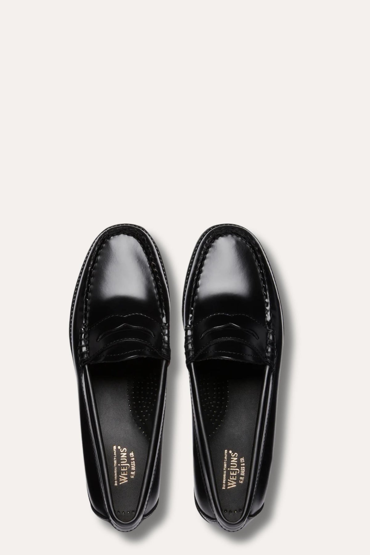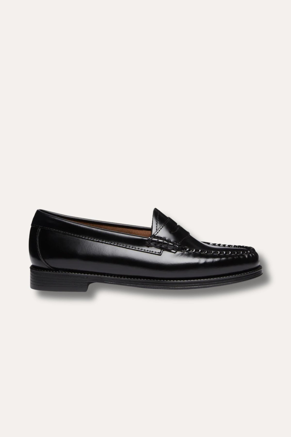 Easy Weejuns Penny Loafer er selve originalen – en ikonisk modell som har definert klassisk amerikansk stil siden 1936. Denne versjonen er laget i sort, polert skinn med håndsydde sømmer i ton-i-ton vokset tråd og tradisjonell heel-to-heel welt stitching som gir det autentiske Weejuns-uttrykket.