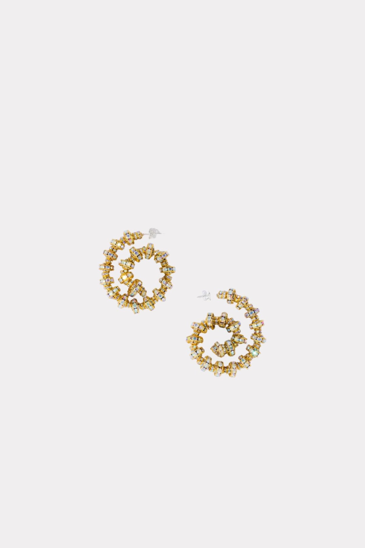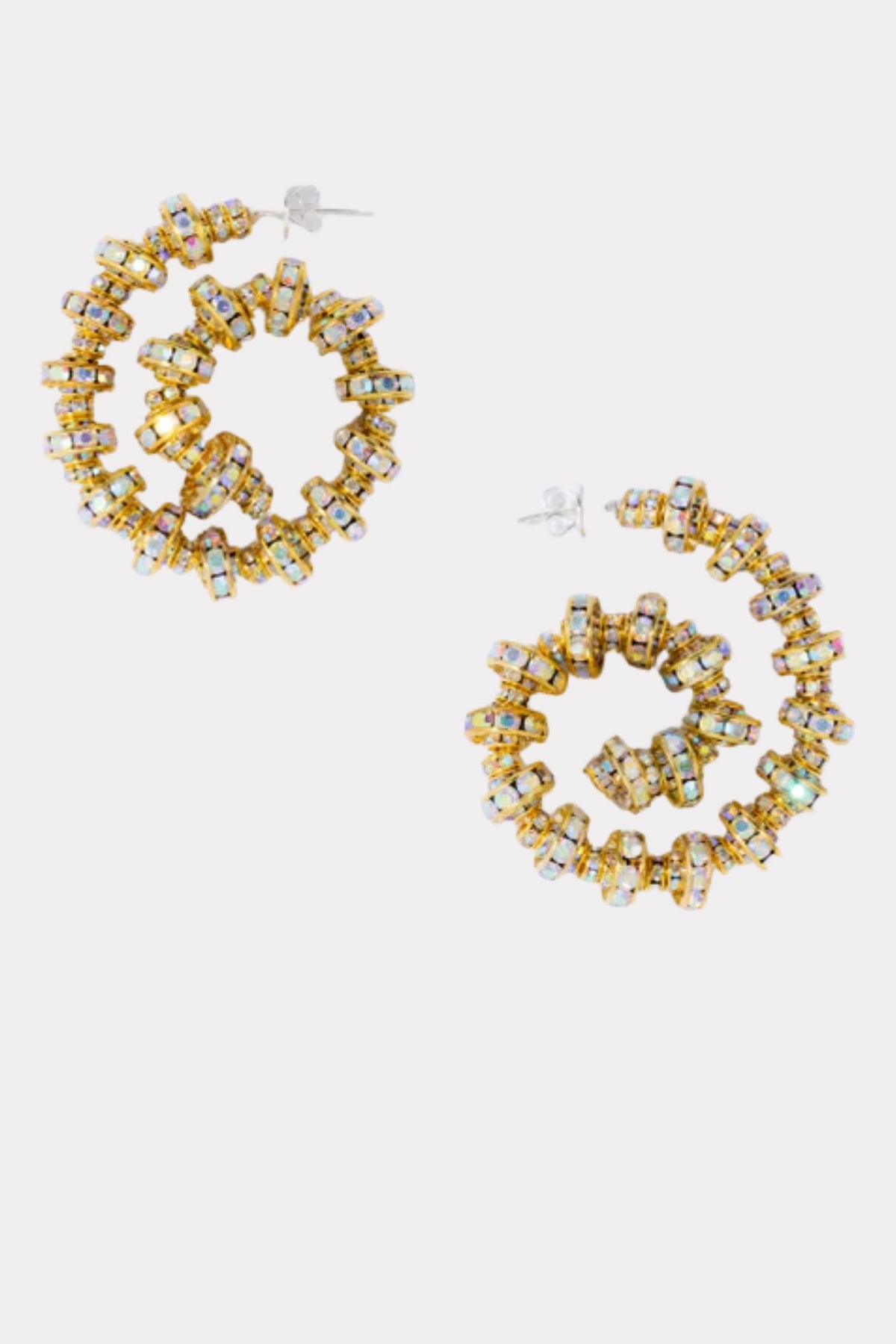 Spiral Hoops fra Pearl Octopuss.y er unike øreringer med en oversized spiralform, dekorert med krystallbelagte rondelleperler. Et elegant og iøynefallende tilskudd til smykkesamlingen.