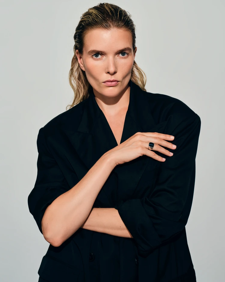 Cushion Black Larvikite er en klassisk signetring med en spesialskåret stein av Larvikite