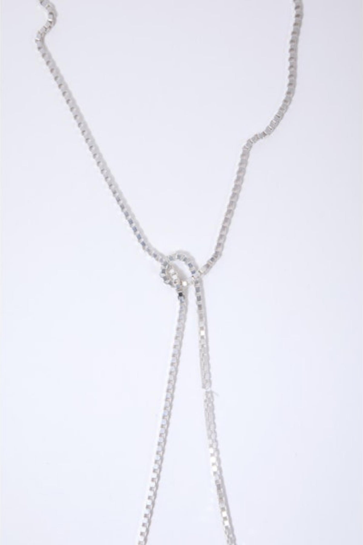 Silver Box Chain Rope fra Pearl Octopuss.y er en smykkelenke laget for å bli brukt som en fleksibel slipslenke. Knyt det som et slips eller vikle den flere ganger for å bruke den som en choker. Du kan også legge til en brosj eller et anheng for å krydre looken