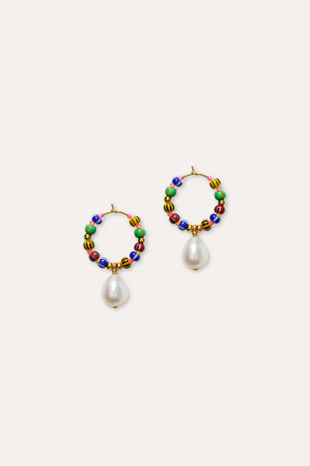 Magic Moments Hoop fra Anni Lu er lekne hoops med en fargerik miks av perler og ferskvannsperler. Et statement-smykke med feststemning – iøynefallende, morsomt og umulig å overse.