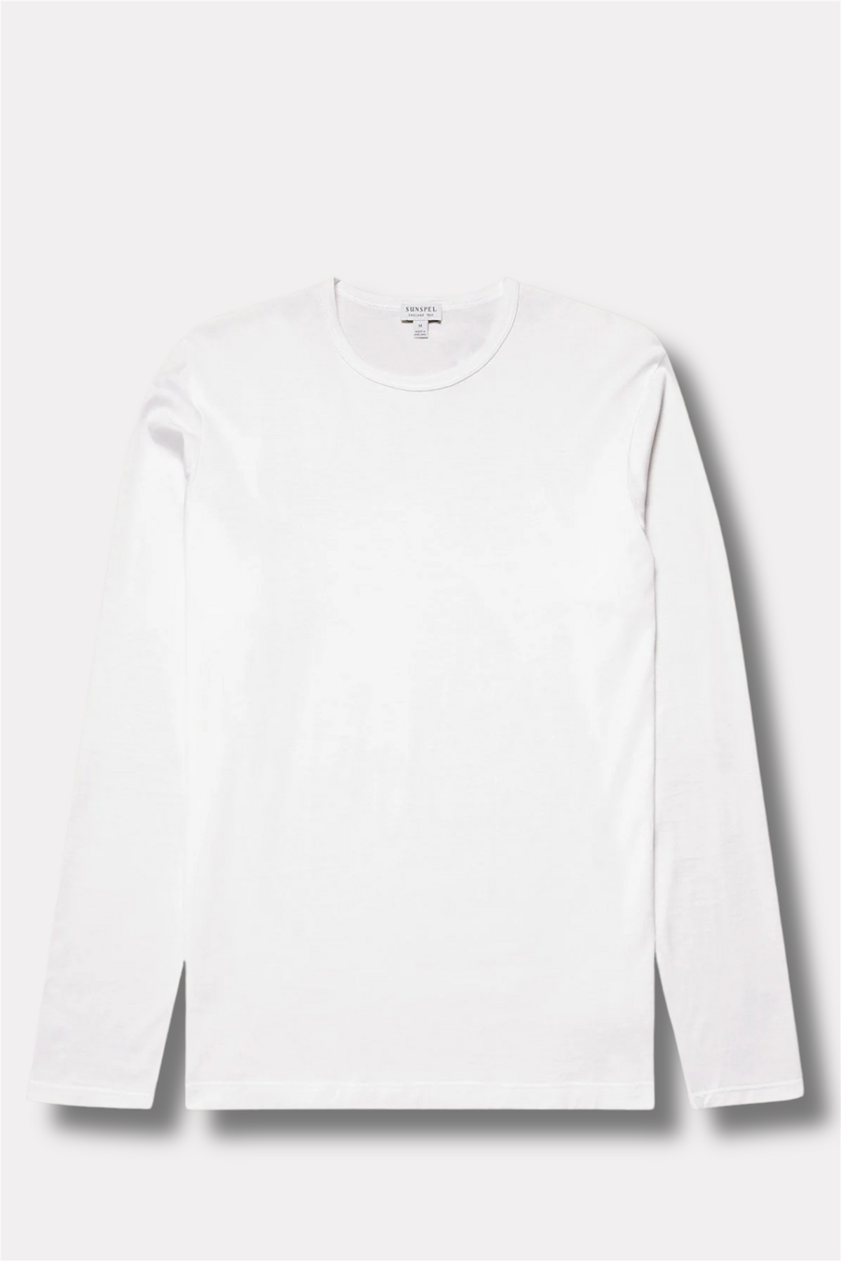 Sunspel Long Sleeve Classic T-shirt er en langermet versjon av den ikoniske t-skjorten som Sunspel har perfeksjonert gjennom over et århundre. Håndlaget i England av ekstra langfibret Supima-bomull fra en enkelt gård i California, kjent for sin mykhet, holdbarhet og luksuriøse følelse mot huden. En lett og slitesterk base som passer like godt alene som under en genser eller jakke.