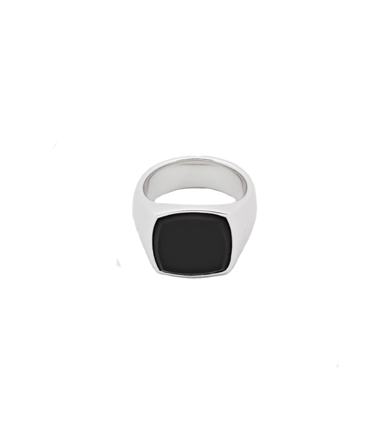 Cushion Black Onyx fra Tom Wood har en moderne og minimalistisk følelse. Ringen er støpt i 925 sterling sølv med en svart onyx stein.