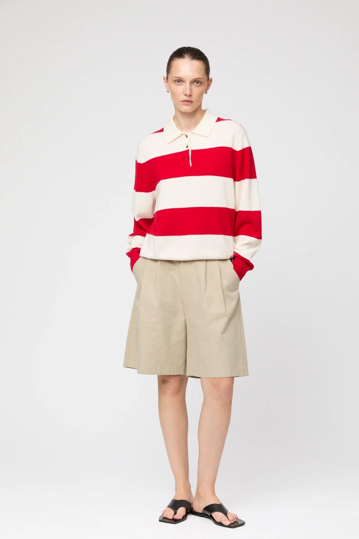 Estate Pique Sweater fra FWSS er en lett og sofistikert genser i børstet ultrafin merinoull, utviklet for vårsesongen. Den har en avslappet passform og raffinerte detaljer som ribbestrikket krage og en diskret stolpe i front. Subtile referanser til klassiske skoleuniformer gir genseren et tidløst, preppy uttrykk.