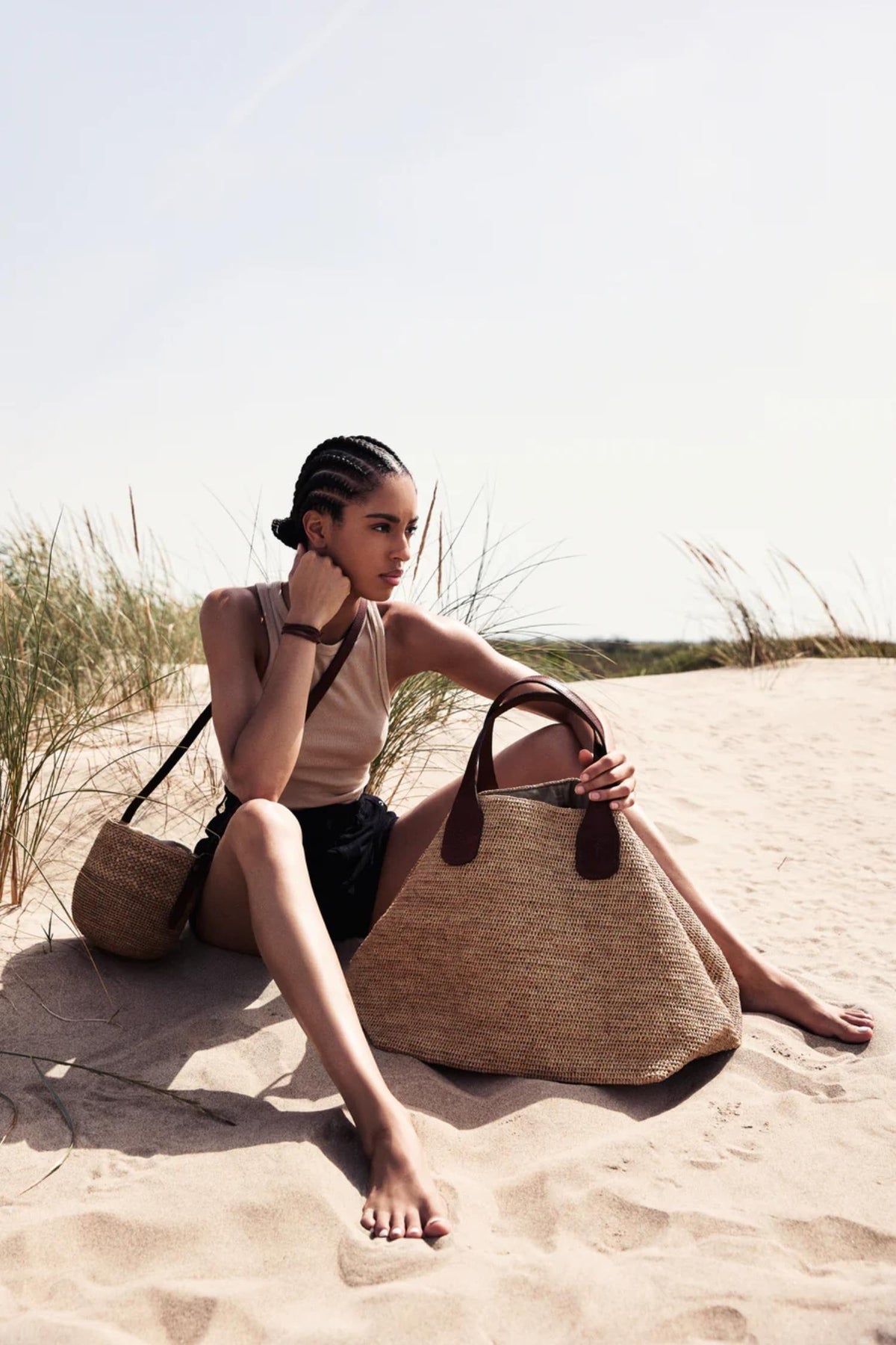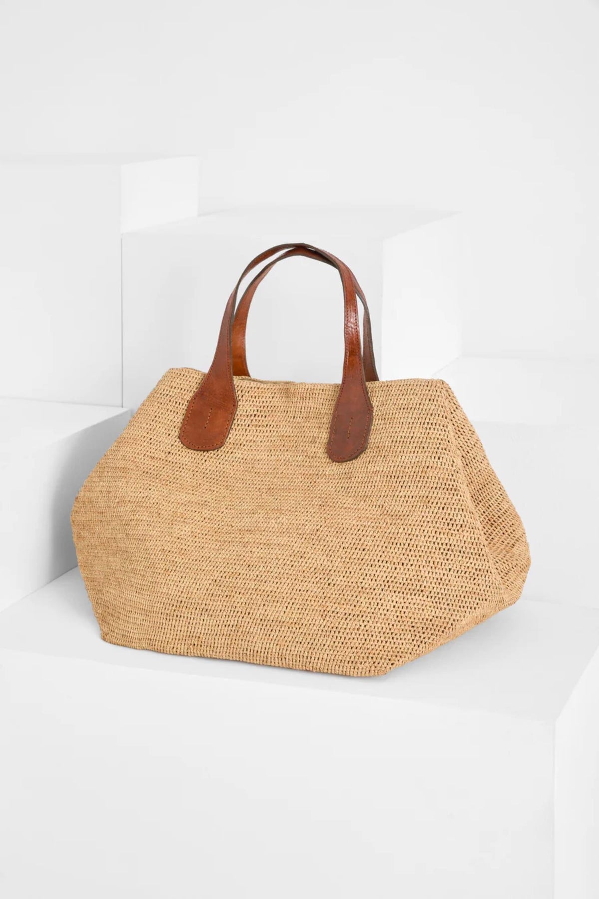 Rio Bag fra IBELIV er en håndlaget strandveske i 100 % naturlig raffia – en elegant og funksjonell følgesvenn for sommerdager.