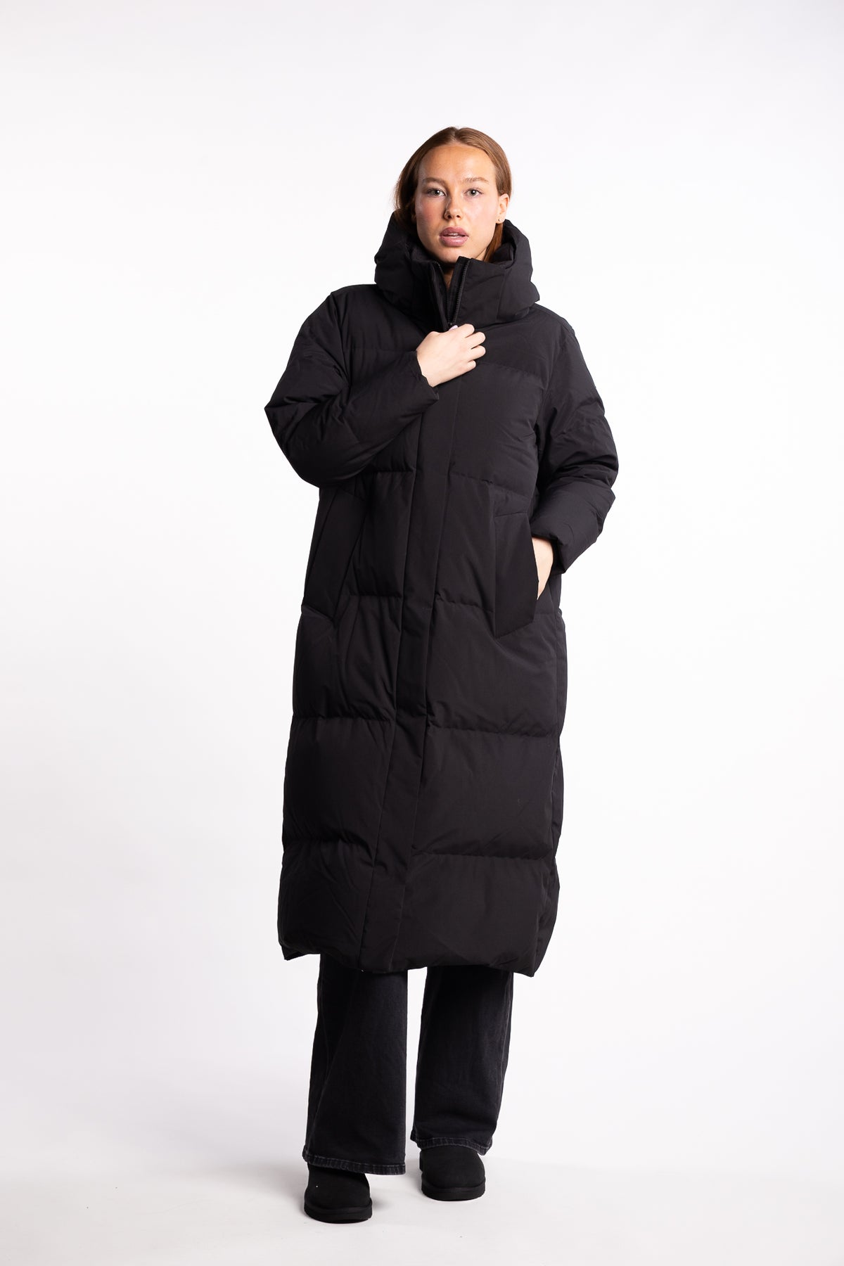 Astro III fra Scandinavian Edition er en voluminøs dunjakke med moderne uttrykk og teknisk funksjon. Modellen har et oversized snitt med lang, rett fasong og høy, strukturert krage som gir både stil og maksimal beskyttelse mot kulde og vind. Jakken kombinerer minimalistisk design med vinterklar funksjonalitet – lett, varm og behagelig å bevege seg i.