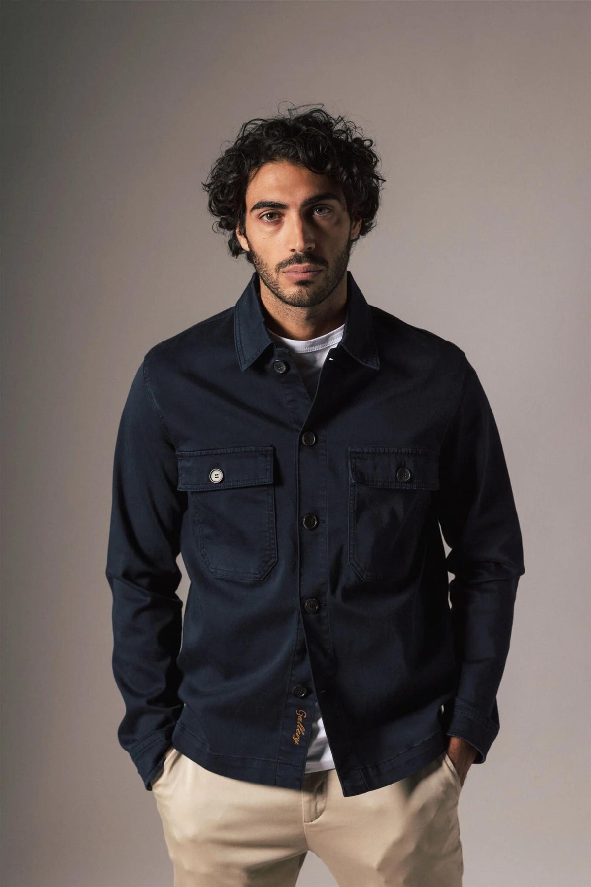 Garnfarget overskjorte med normal passform, laget i et mykt og lett elastisk bomullsblandingsstoff som gir både komfort og bevegelsesfrihet. Modellen har klassiske brystlommer med knappelukking, frontknapper og spiss krage. Et allsidig plagg som kan brukes alene eller lagvis over en T-skjorte eller hettegenser – gjerne sammen med matchende bukser for et gjennomført uttrykk.