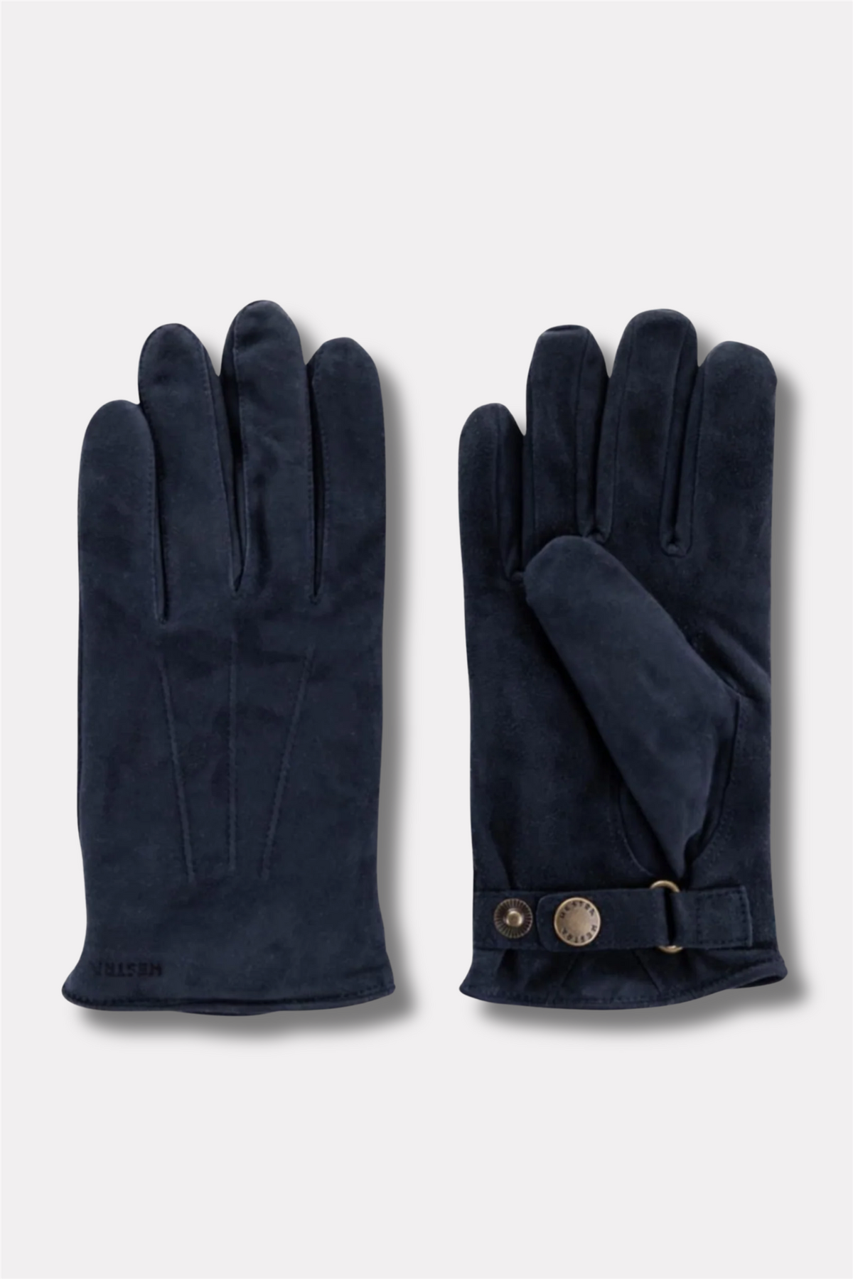 Robert Suede fra Hestra. Et par klassiske skinnhansker i semsket skinn. Hanskene kan justeres med knapp.
