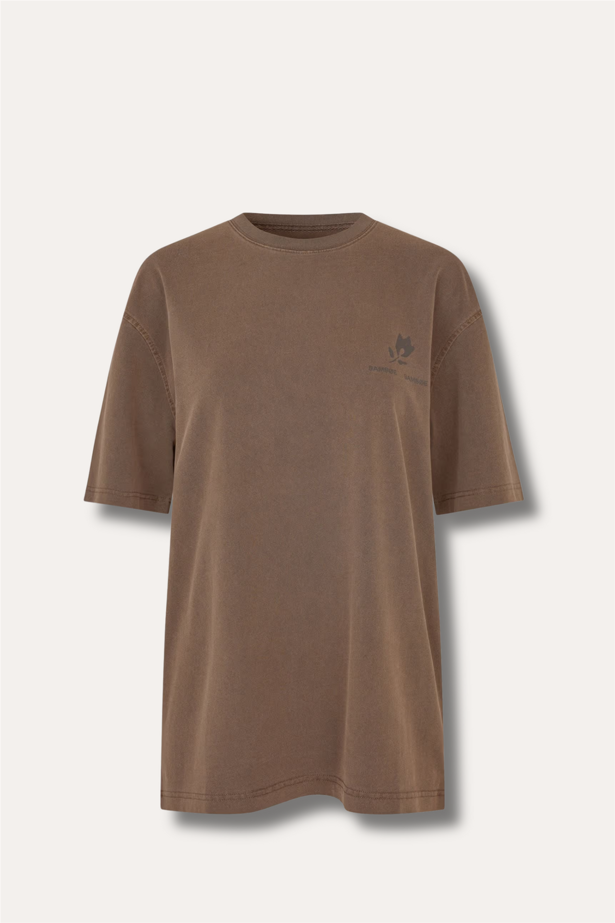 Samsøe Samsøe Sacohen T-shirt i fargen Brown Stamp er en moderne t-skjorte med avslappet silhuett og grafisk uttrykk. Den oversized passformen og droppede skuldrene gir et uanstrengt preg, mens den myke jersey-kvaliteten i økologisk bomull sørger for høy komfort.